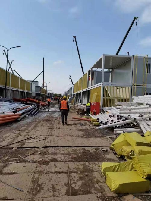 援建工程队主要负责协助完成上海一建集团承建的P2地块项目,总建筑面积约9.4万平方米,共计5728个集装箱。该项目预计最快4月22日投入使用。