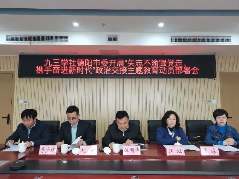 近日,九三学社德阳市委会在民主党派机关7楼会议室召开“矢志不渝跟党走、携手奋进新时代”政治交接主题教育动员部署会。九三学社德阳市委会主委、德阳市政协副主席汪国华出席会议并作动员讲话。九三学社德阳市委会副主委江虹、刘强、吴泳、李少斌,秘书长孙郢在主会场参加会议,市委委员、各支社主委、各专委会主任以及社员代表通过视频连线方式参会。