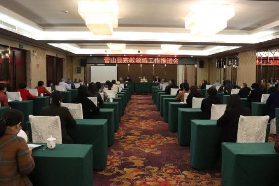 4月18日,营山县召开全县宗教领域工作推进会,通过“实地演练+会场学习”的方式开展消防演练、法制培训。县委统战部(县民宗局)全体干部,各宗教团体、宗教活动场所班子成员,全体教职人员约60余人参加会议。