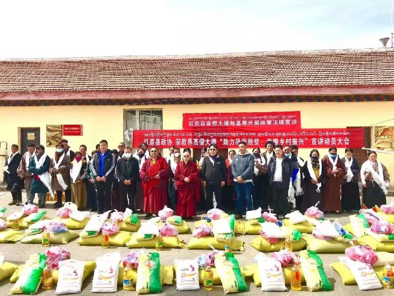 二是坚持抓宣传,积极引导宗教与社会主义社会适应。紧紧围绕“爱国团结守法感恩”主题,以铸牢中华民族共同体意识为主线,坚持宗教中国化方向,结合“爱国爱教爱家乡”僧尼教育活动,组织寺庙重要教职人员、法律明白人、寺庙“三员”通过专题宣讲会、座谈会、培训会,扎实开展“讲经前讲法学法”,认真开展习近平新时代中国特色社会主义理论、中央第七次西藏工作座谈会、中央民族工作会议、全国宗教工作会议及党和国家的民族宗教方针政策、十一世班禅大师对藏传佛教教规教义精深阐释等,开展宣讲500余场次。全县各级干部深入乡镇和寺庙,用僧众喜闻乐见、通俗易懂的形式,创新方法,因势利导、多层次、多渠道、多角度宣讲党的富民惠民政策和相关法律法规,宣传红原翻天覆地的变化和“十四五”美好前景,教育引导僧尼和信教群众明辨是非、站稳立场,做合格僧尼,守法公民,共同维护稳定,共图加快发展,共促社会和谐。重大节庆日升国旗、挂领袖像等成为常态,藏传佛教与社会主义社会不断相适应。