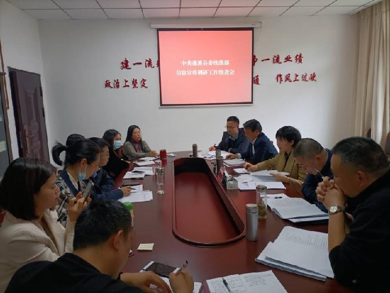 4月19日,遂宁市蓬溪县委统战部召开信息宣传调研工作推进会。县委常委、统战部部长鲜艳君出席会议并讲话,县委统战部(县民宗局)全体干部职工参加会议。