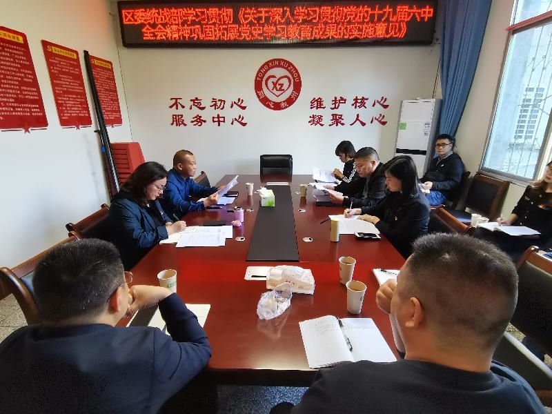 4月21日,叙州区委统战部召开专题会议,再次集中学习党的十九届六中全会精神。