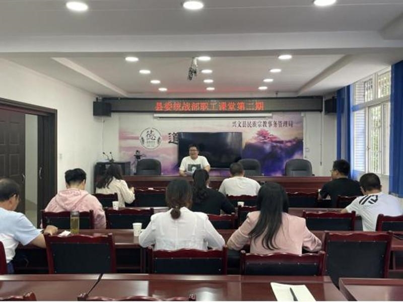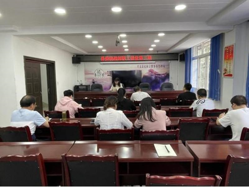 4月24日,兴文县委统战部举办第二期“职工课堂”,课堂由县委统战部副部长胡小羽主持,全体干部职工参与学习。