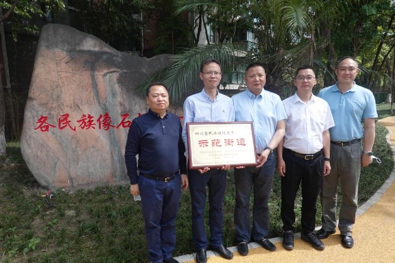4月25日,金牛区委常委、统战部部长任继斌带队到金泉街道及成都财贸职高,为辖区内被命名为“第六批四川省民族团结进步示范单位”的3家单位颁发奖牌。
