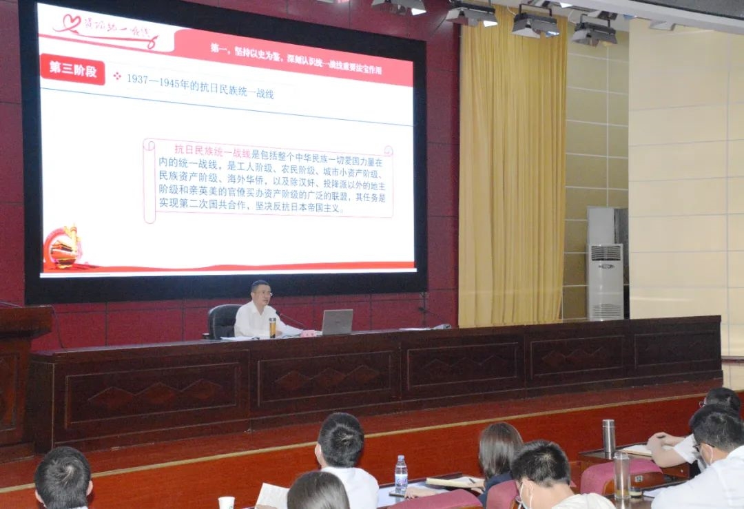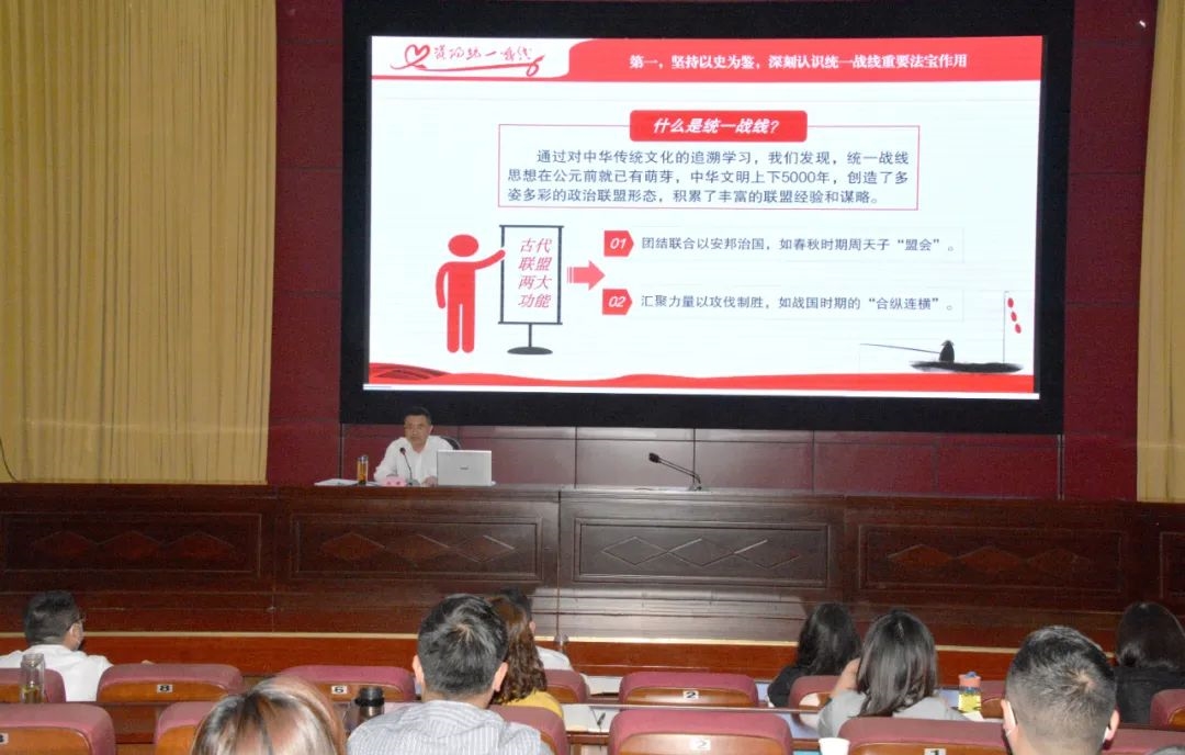 授课辅导以“深学统战历史、笃行统战条例,为推进资阳高质量发展汇聚同心力量”为主题,立足于我们党统一战线政策提出100周年的重要节点,围绕“深刻认识统一战线重要法宝作用、准确把握统战条例各项规定要求、积极主动适应新的形势发展需要、齐心协力推动统战事业行稳致远”4个方面,系统回顾总结统一战线发展历程和经验启示,深入解读《条例》的重大意义和指导要求,客观分析当前统一战线外部环境和内部构成变化,结合资阳实际对推动新时代统战工作高质量发展明晰了路径方法。