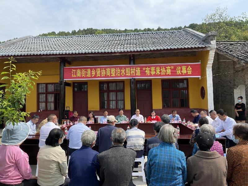 近日,阆中市江南街道召开“乡贤议事会”,组织乡贤代表协商处理江南街道白溪村水毁村道整治工作。