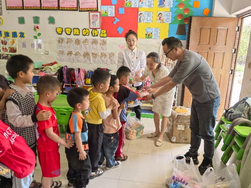 慰问活动现场,会理绿陶文化产业园负责人与幼教点教师小朋友亲切谈心,勉励他们好好学习、快乐成长,成为国家的栋梁之材,并发放慰问物资椅子20把,书包、文具等30余套。