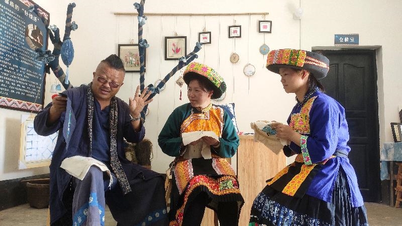 在政府的大力支持下,杨安平成立了古蔺县箭竹苗族乡苗族刺绣蜡染传统工艺作坊。作坊采用“作坊+家庭作坊+农户”的生产经营模式,带动县内就业人数400余人,组织非遗培训2期,涉培人数达50人,培植家庭作坊3个,助力2个家庭农户实现年净收入3万元以上。