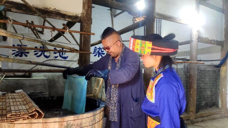 工作间内,杨安平正专注地画蜡、染色。蓝底白画,至简之色,却在杨安平手中开出至繁之美。杨安平是古蔺县第十一届政协特邀委员、传统技艺非物质文化遗产项目苗族蜡染代表性传承人、四川省非物质文化遗产保护协会会员。多年来,他用热爱担起责任,用实际行动传承非遗文化,助力经济发展。