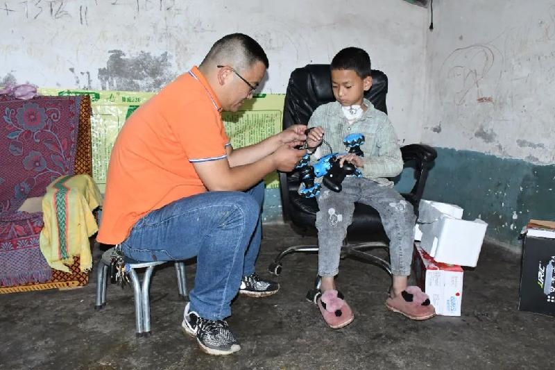 19:50,乐阳社工协会、微光公益到达湾丘彝族乡黄龙村,对身患喉乳头瘤的小贤家庭进行了入户探访,微光公益详细了解了该家庭的困难情况和需求;乐阳社工还为小贤圆了“想要一辆遥控汽车”的微心愿。