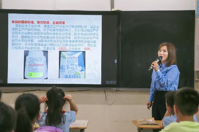 本次授课,何凤君同志从区委、区政府“围绕中心服务大局”保障群众饮食用药安全出发,积极主动履行民革党员义务,结合本职岗位深入学校,用浅显易懂的儿童化语言、图片、视频、道具等,通过鼓励、提问、现场互动等多种方法,让师生在轻松愉快的氛围中学习了食品安全、科学消费、健康生活的知识,为推进区域食品安全贡献自己的一份力量。