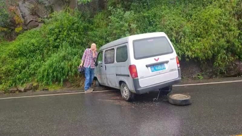 5月9日上午9点15分,沐川县侨联主席杨春等人到联系乡开展帮扶工作,路过五马坪时突遇一五凌宏光面包撞崖正卡在马沟里,不知情况如何,杨春急忙招呼司机在旁边停车,车刚一停稳,他急忙跳下车健步上前察看。
