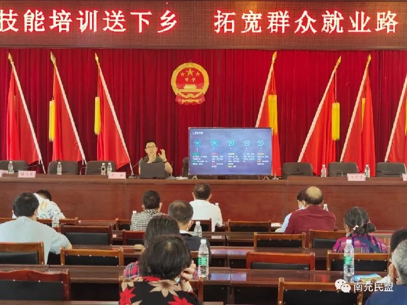 5月7日,民盟南充市委为阆中市思依镇青河村群众40余人开展了就业技能培训,民盟南充市委专职副主委唐虎鸣到场指导。
