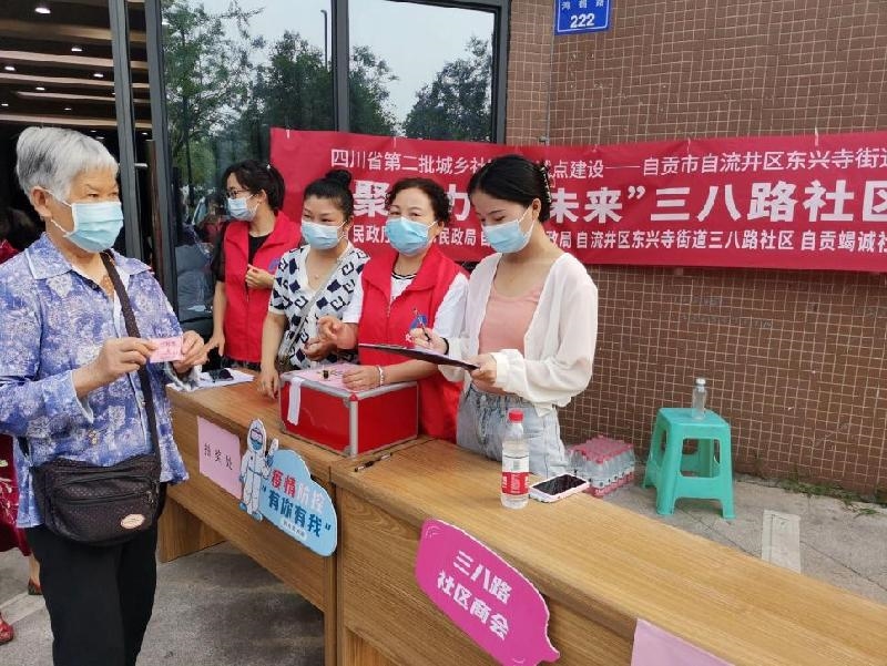 近日,自贡市自流井区东兴寺街道三八路社区商会积极响应疫情防控要求,动员商会成员参与疫情防控宣传、服务引导广大社区居民规范有序接种疫苗。