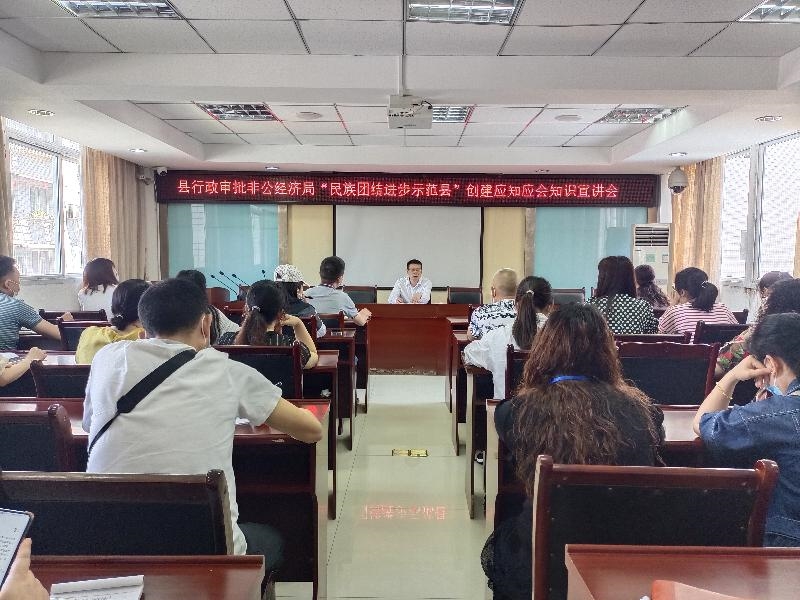 2022年5月10日上午,筠连县行政审批和非公经济发展局组织召开“民族团结进步示范县”创建应知应会知识宣讲会,局机关和中心窗口全体干部职工参加宣讲会。
