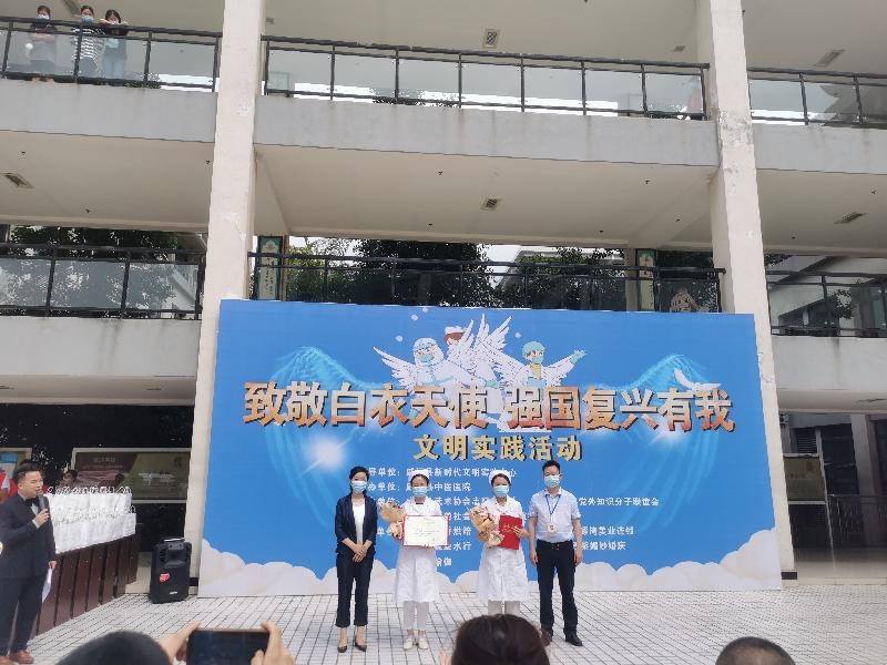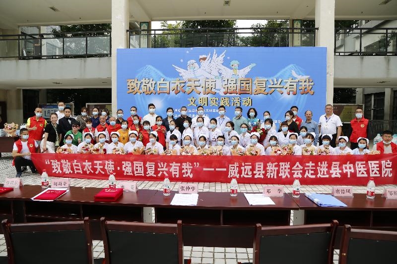 威远县知识分子联谊会、威远县新的社会阶层人士联谊会班子带领部分会员走进威远县中医院,向白衣天使致敬,向他们送上节日的慰问和美好的祝福。