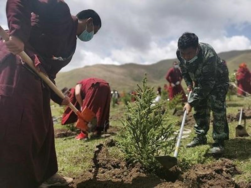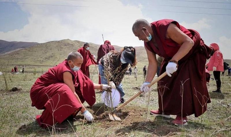为深入学习习近平总书记关于黄河流域生态保护和高质量发展的重要论述,认真贯彻落实州委关于开展黄河支流域生态防护带建设行动的决策部署。5月15日,阿坝州委统战部、州民宗委、州编译局、州佛教协会、州格管委、四川藏语佛学院阿坝分院,联合阿坝县委统战部、县民宗局、各寺庙管委会干部及僧尼代表180余人,在阿坝县委县政府的统一组织下,深入求吉玛乡开展植树造林活动,拉开了阿坝州黄河干流生态保护带“同心林”建设行动序幕。