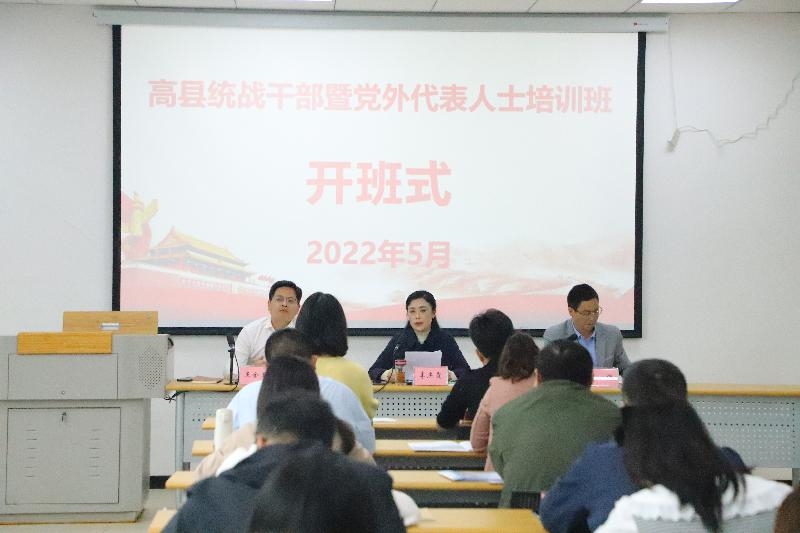 5月16日,高县2022年统战干部暨党外代表人士培训班在西南交通大学宜宾研究院开班。全县13个镇统战委员(统战干事)、统战领导小组成员单位党外干部和部分党外代表人士共50人参加开班仪式。高县县委常委、统战部部长李杰霞出席开班仪式并讲话。高县县委统战部常务副部长、县台办主任李强主持开班仪式。