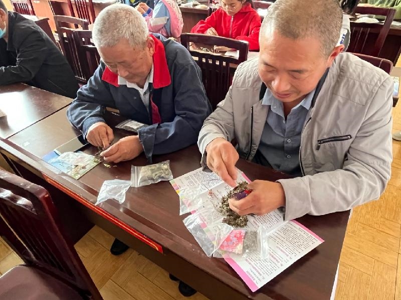在制作香囊前,志愿者首先向大家介绍了端午的风俗及端午节佩戴荷包的来历,让居民们了解端午的风俗文化。大家各自挑选荷包布料、香料、挂件等材料并动手制作,大家互帮互助,现场一片其乐融融。