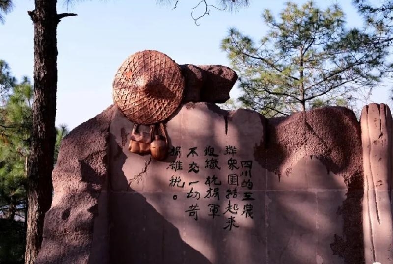 山坡顶上有一块褐红色的浮雕,毛泽东、朱德、周恩来等红军领导人或站或坐,生动再现了会理会议召开时的情景。除此而外,“我要当红军”人物雕像、草棚子、望北亭等景观星罗棋布,遍洒山坡,如今的会理会议纪念地已是人们追寻红色记忆的必去之地。