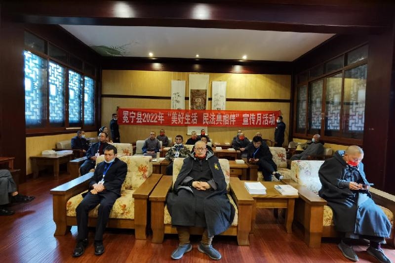 2022年5月19日,冕宁县委统战部、县民宗局会同县司法局到灵山寺开展“美好生活·民法典相伴”主题宣传活动。