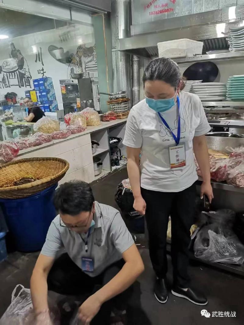 民革武胜活动小组党员任洪玲深入市场认真落实疫情防控食品药品安全检查工作。