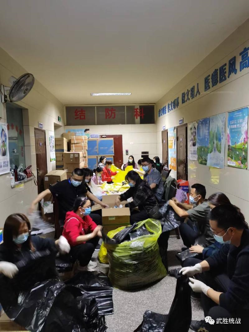 民革武胜活动小组党员夏青组织为全县1200余名援邻医务人员准备水、面包等生活物资,提供后勤保障。