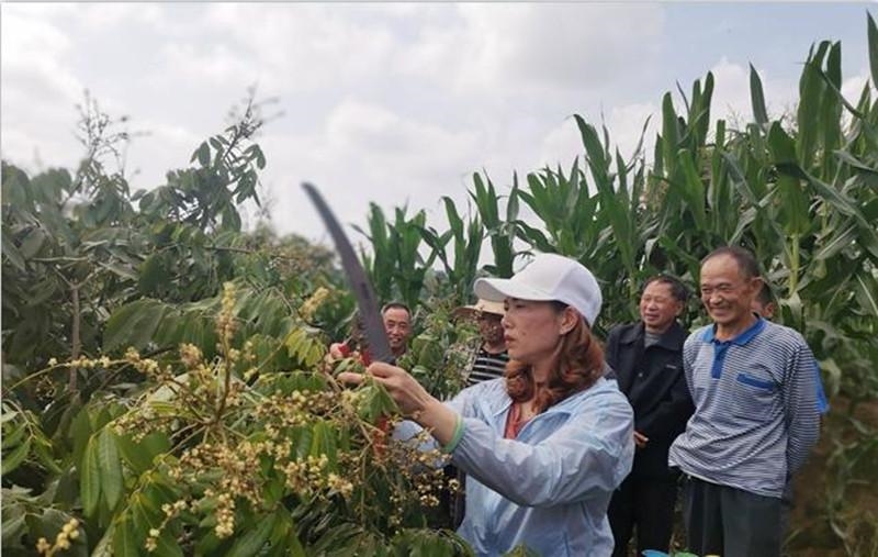 在龙眼基地里,趁着晴好天气,泸县乡联会副会长武万琼正向种植户免费培训龙眼种植、管理技术,带动大家规模发展龙眼产业。“这棵树今年没有开花,如果我们把它多余的枝条留着,那么等到夏季还要再长,等到秋季的时候还会再长,长出来枝条会很细很细,等到明年可以开花结果的时候,它的树形就不是很好,又很高,第二年就算开了花、结了果,也很容易被吹断。”武万琼一边解释,一边用剪刀剪去多余的枝条。