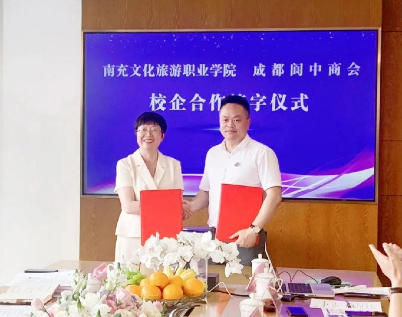 经过深入座谈交流,双方就校企合作达成一致意见,南充文化旅游职业学院党委书记王荣秀、成都阆中商会会长徐斌分别代表南充文化旅游职业学院和成都阆中商会签订了《战略合作框架协议》。