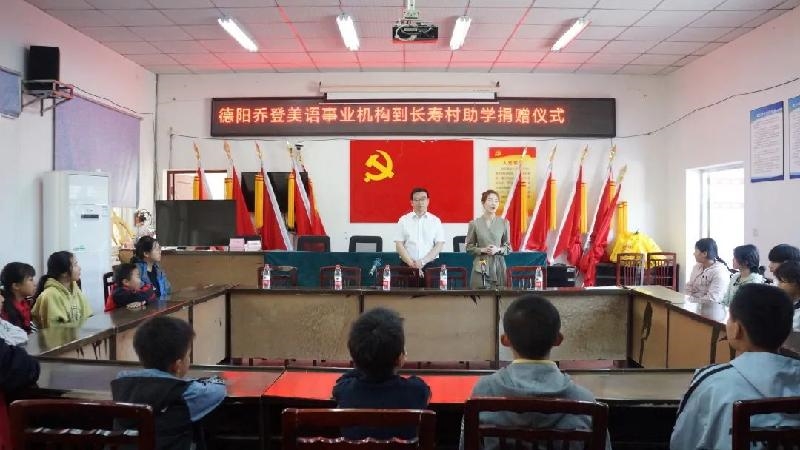 5月22日,德阳市台资企业协会副会长单位、乔登美语事业机构执行董事李丹女士,前往德阳市旌阳区和新镇长寿村、中江县南华镇和永太镇,向结对的43名农村困难家庭中小学生捐赠助学金、文具用品共计24816元。德阳市委统战部副部长、市侨联党组书记谢锦辉,中江县委统战部常务副部长郑林陪同。