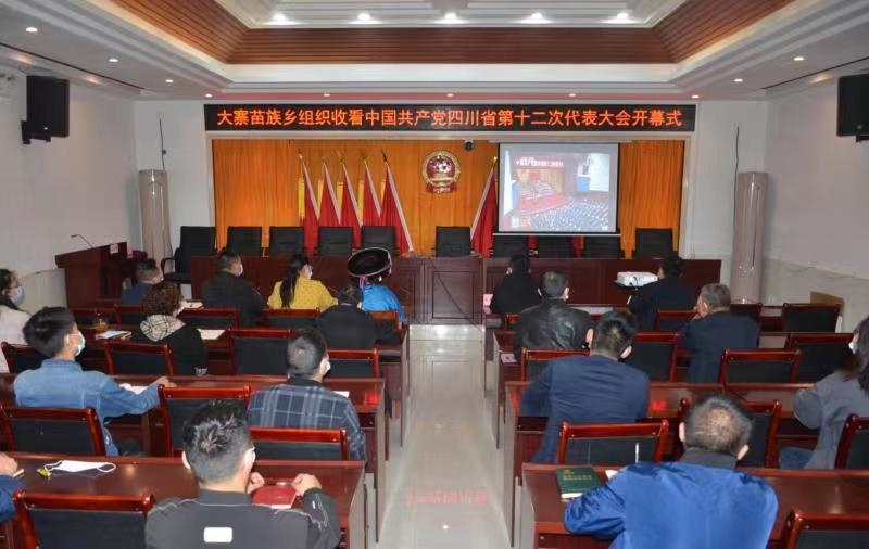 5月27日上午9时,中国共产党四川省第十二次代表大会召开。泸州市古蔺县大寨苗族乡全体机关干部,各村(社区)“两委”成员、党员干部、少数民族同胞等通过电视、网络等多种形式准时收看中国共产党四川省第十二次代表大会开幕式实况。