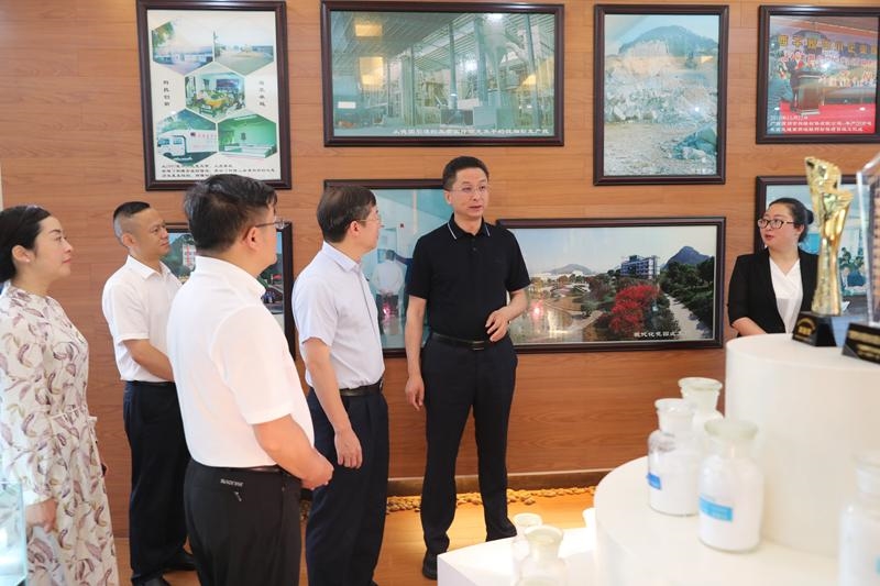 李玉甫一行先后参观考察了德邦物流园、电信高标准仓、智慧农贸市场建设和碳酸钙产业发展等工作,并深入石材加工车间现场,观摩企业生产流程及成品,详细了解企业原料来源、生产工艺、产品种类及用途、生产经营、销售市场,并就矿山开采过程中如何做好安全工作和复绿工作、解决环保问题等方面进行了交流。