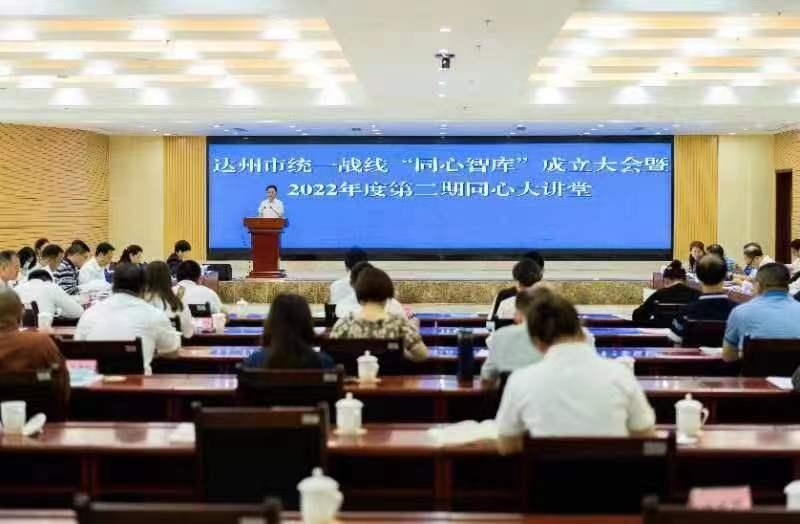 5月26日,达州市统一战线“同心智库”成立大会暨2022年度第二期同心大讲堂举行。省委统战部二级巡视员李明全,市委常委、统战部部长、市总工会主席王蔚荩为达州市统一战线“同心智库”揭牌,并为第一批智库专家颁发聘书。