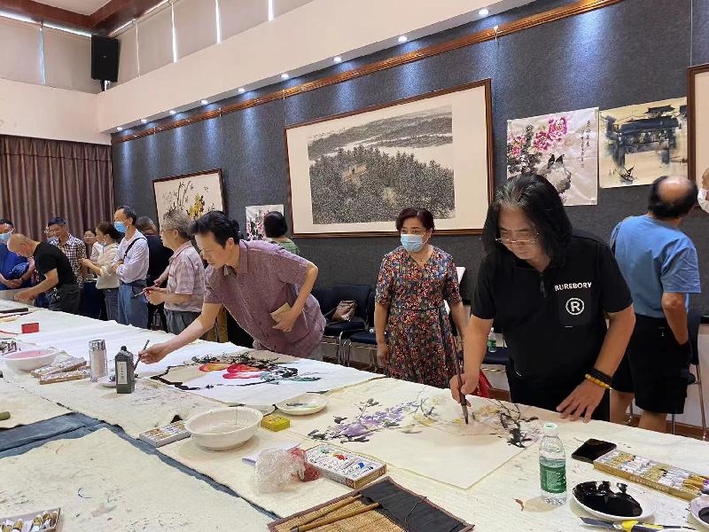联谊活动中,全市港澳台侨界书画爱好者与市老年书画协会书画爱好者开展了“喜迎二十大·翰墨颂中华”主题书画创作,大家挥毫泼墨,用手中的笔抒发“永远跟党走”的决心与“奋进新征程”的信心,创作出了一幅幅构思新颖、主题突出、特点鲜明的精美书画作品。
