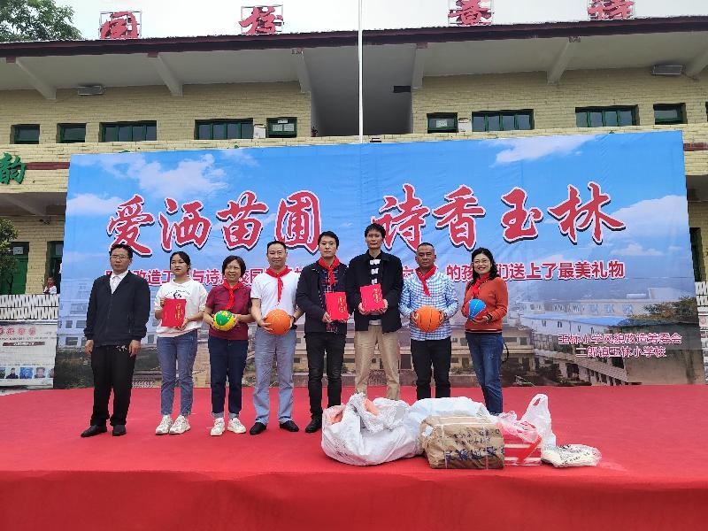 活动现场举行了江阳区统一战线与玉林小学共筑共建“诗意校园”捐赠仪式。江阳区委统战部为学校赠送了40册泸州本土作家诗集、诗词楹联作品集,致公党江阳区基层委赠送了120册儿童文学书籍,九三学社江阳区基层委为学校孩子捐赠了50个篮球等体育用品,共同提前祝孩子们“六一”儿童节快乐。