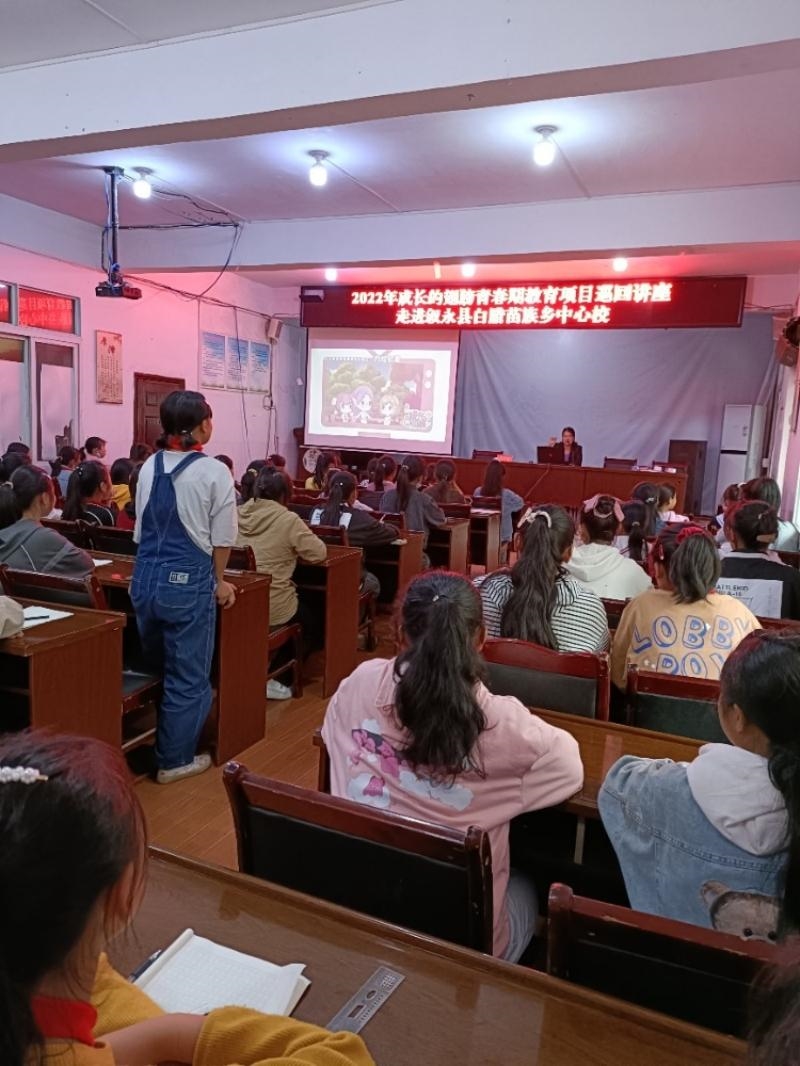 课堂上,老师通过图片、文字、视频、现场展示、现场问答等形式,把“神秘”“害羞”的青春期知识展示给五、六年级的每一位女生,让她们对自己的身体有了进一步了解,同时也学到了如何避免受到侵害的知识。女生们时而羞涩地笑,时而与老师互动,时而若有所思,充满了对青春期知识的渴求。讲座结束后,志愿者还向四所学校近1000名女生发放了成长守护包,用爱心助力女生健康成长。