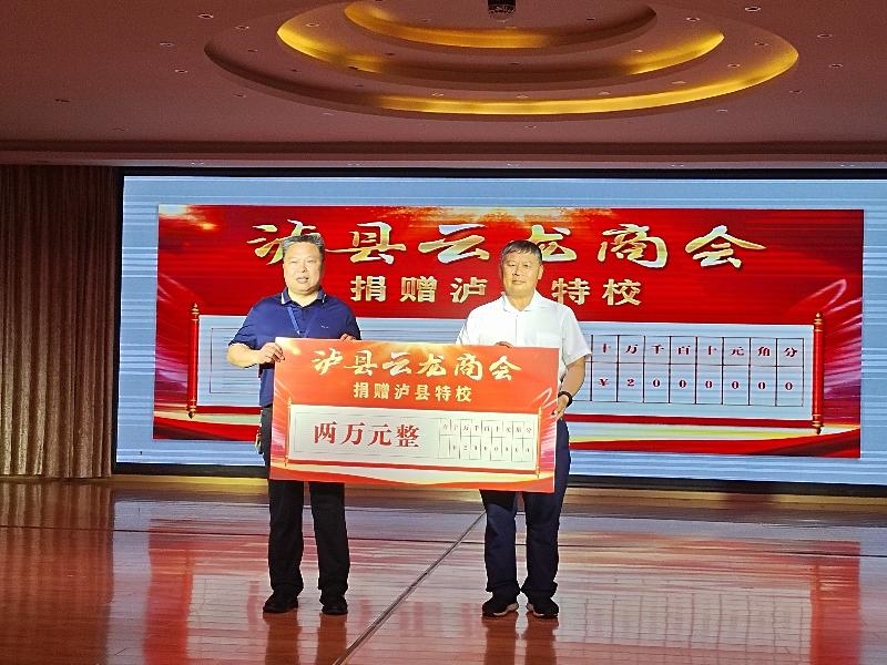 泸县云龙商会分别于5月31日到泸县云龙镇茅坝中心小学校、6月1日到泸县中宏特殊教育学校开展“小书包,大爱心”捐赠活动。此次爱心活动,云龙商会共捐资1.55万元用于购买书包155个、文具盒155套捐赠给云龙镇茅坝中心小学校的孩子们;向泸县中宏特殊学校捐赠现金2万元,用于购买80吋陶艺制作一体机一台,助力孩子们学到一技之长。泸县云龙商会会长陈登树给教师们送去问候,向同学们致以节日的美好祝福,愿孩子们健康快乐成长,争做德、智、体、美、劳全面发展的优秀学生。
