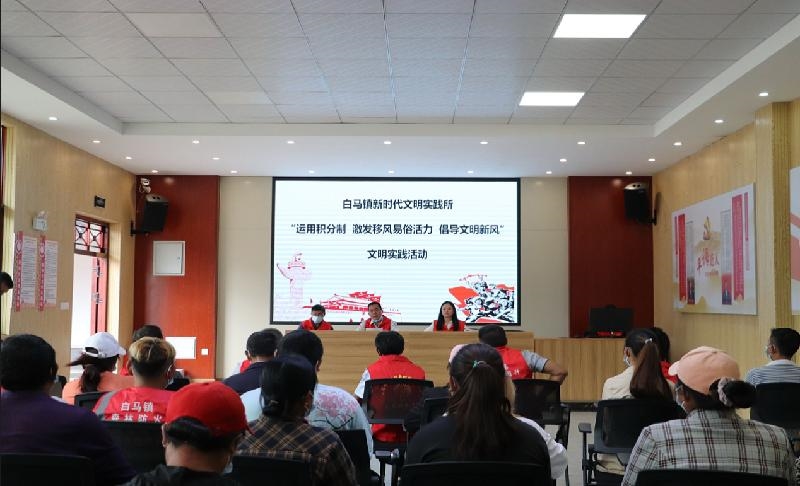 近日,一场主题为“运用积分制 激发移风易俗活力 倡导文明新风”的文明实践活动在白马镇高龙村新时代文明实践站举行。村民们踊跃参与移风易俗有奖知识问答、移风易俗我承诺等活动,现场气氛格外热烈。“参加文明实践活动不仅能长知识,还能用获得的积分兑换生活用品。”高龙村村民王强说。