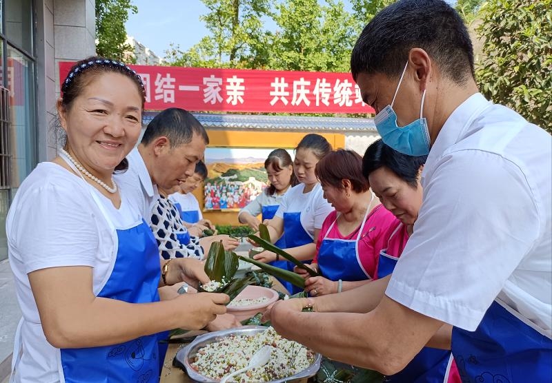 活动现场,大家围坐一起,一边包粽子切磋技艺、交流心得,一边畅谈端午习俗和节日趣事。“我要包红枣的”“我最喜欢吃腊肉咸味的……”大家你一言我一语分享着各自生活工作中的趣事,每个人脸上都洋溢着幸福的笑容。不一会儿,一盘盘香气扑鼻的粽子上桌,厨房、楼道、院落飘满了粽子的清香。