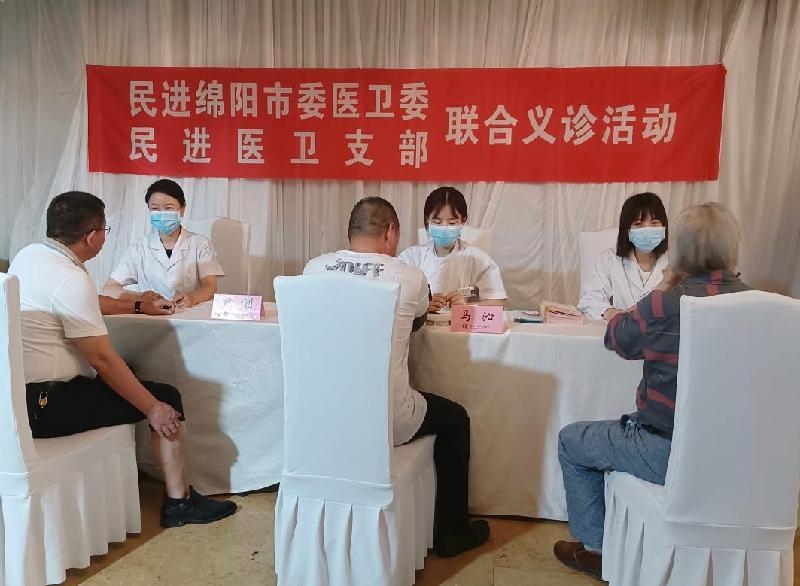 2022年6月2日,在端午节来临之际,民进绵阳市委医卫委、民进医卫支部在绵阳半山南湾开展联合义诊活动。民进民进绵阳市委医卫委主任、绵阳市第三人民医院健康管理中心护士长尹利,民进医卫支部主委董建襄,绵阳市第三人民医院老年一科医学硕士、医疗组长王娟,护士马沁参加活动。