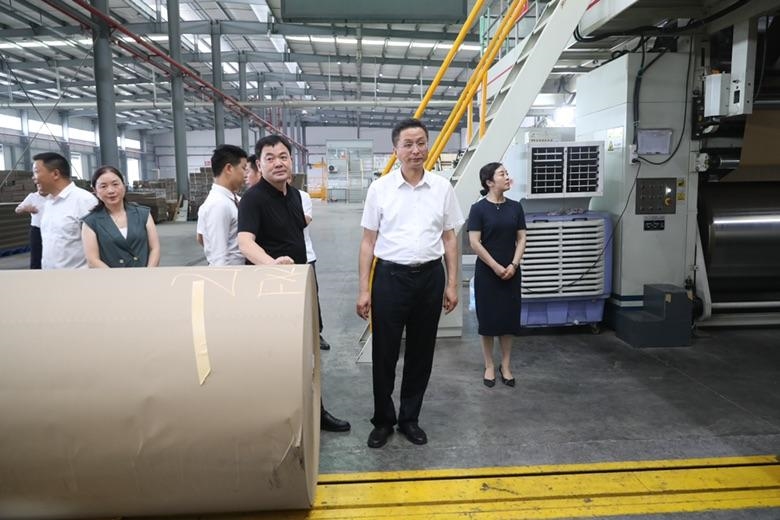李玉甫一行实地参观了企业造纸车间、深加工车间,详细了解企业发展状况、纸品后期加工生产工艺流程和市场销售等情况,并就相关事项进行交流。