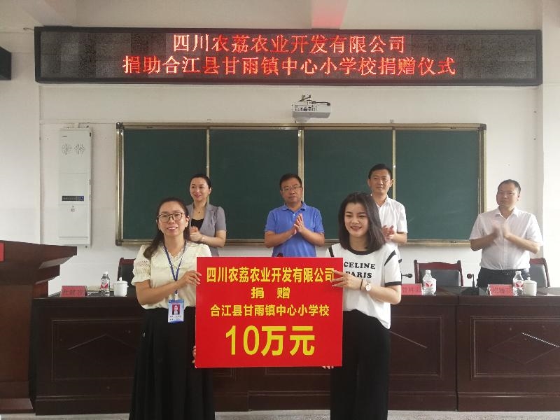 捐赠仪式上,四川农荔农业开发有限公司向合江县甘雨镇中心小学校捐赠10万元,用于改善办学环境。企业负责人在捐赠仪式中表示,希望学生们树立远大理想,把社会各界人士的关爱化为刻苦学习、感恩奋进的动力,用优异的成绩回报祖国、回报社会、回报家乡。