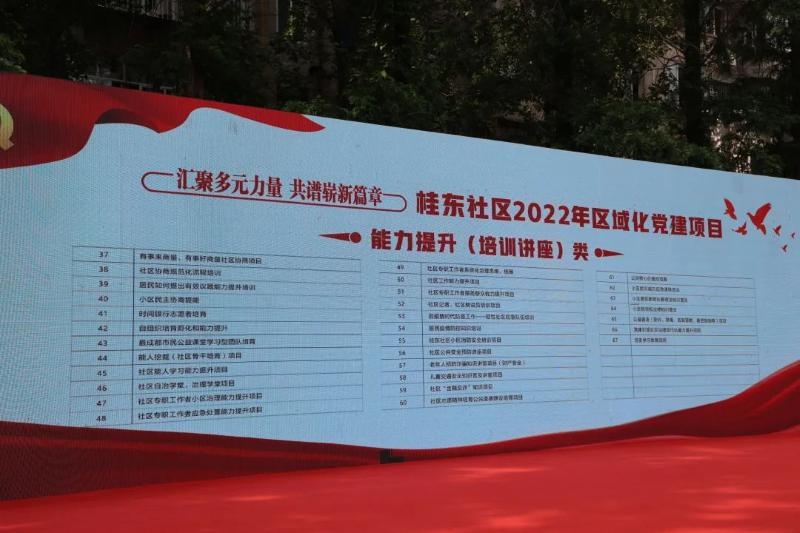启动仪式上桂东社区发布了需求清单,新都区统一战线基层组织结合各自优势资源,主动申请认领了9个方面18项具体任务,主要涵盖了以下方面:一是为桂东社区商家志愿服务项目提供支持;二是为桂东社区提供园林技艺培训和院落微景观设计,帮助桂东社区提升景观形象;三是在医疗服务项目上,在儿童医疗服务项目、保健知识系列讲座活动、中医健康知识进社区、义诊四个项目上提供服务;四是在法律咨询、法治专题讲座、应急救援培训等工作上提供智力支持。