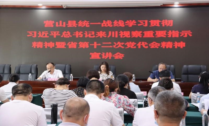 6月17日,营山县统一战线召开专题会议,向各民主党派、县工商联(民营企业家)和无党派人士,少数民族和宗教界代表人士、新的社会阶层人士、港澳台侨界代表人士等传达习近平总书记来川视察重要指示精神和省第十二次党代会精神,结合营山县统战工作实际进行学习贯彻落实。县委常委、统战部部长朱静出席会议并讲话。