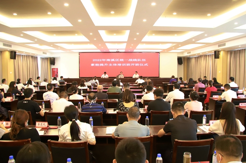 6月20日,2022年南溪区统一战线队伍素能提升培训班开班仪式在区纪委六楼会议室举行。市委统战部常委副部长黄洁,区委书记刘刚出席会议。区委常委、统战部部长、区政协党组副书记王财波主持会议。各镇(街道)统战委员、统战干事,区委统战工作领导小组成员单位分管负责同志,全区副科级党外干部、各民主党派及统战团体成员、党外后备干部等近百人参加会议。