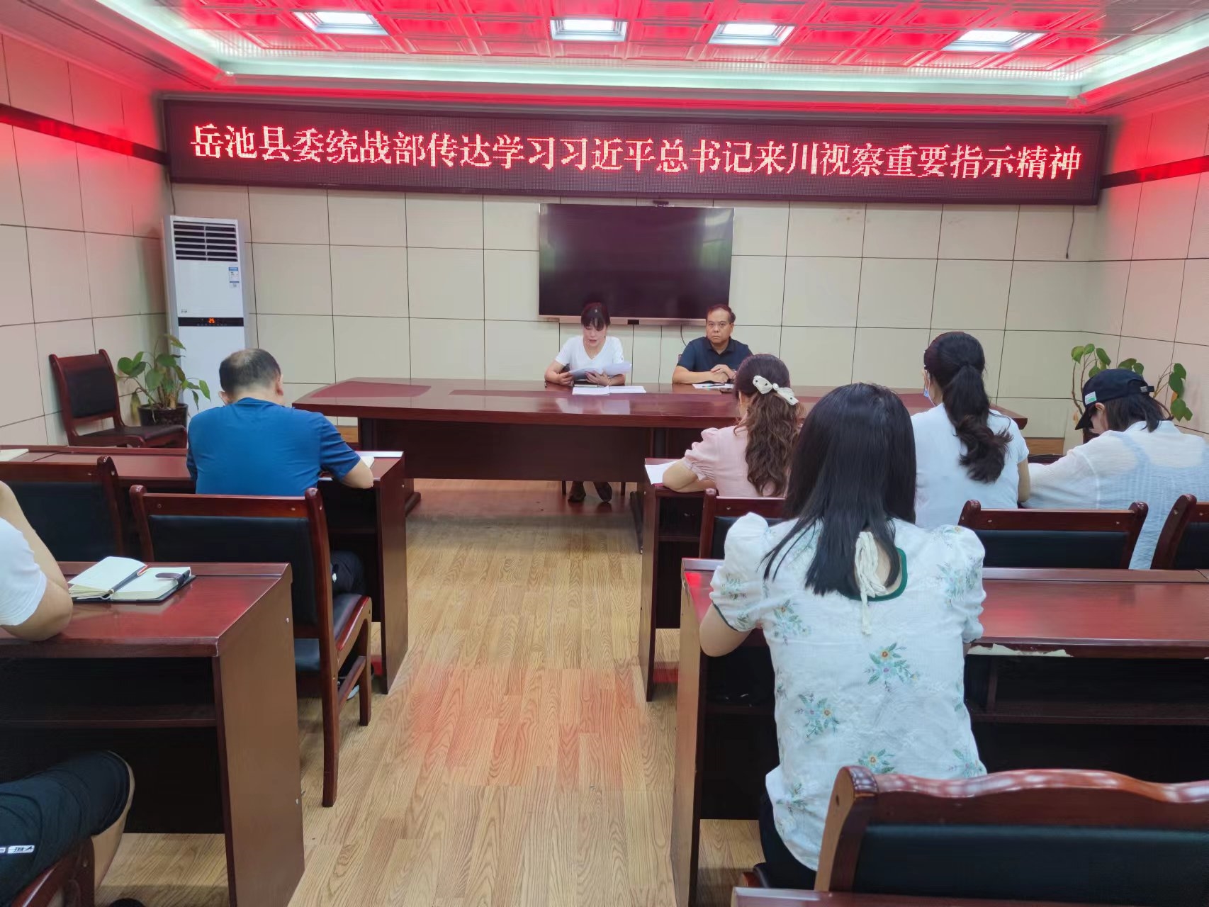 6月20日,岳池县委统战部召开干部职工会,专题传达学习习近平总书记来川视察重要指示精神,安排部署全县统战系统学习宣传贯彻落实工作,县委统战部常务副部长、民宗局局长邱宇主持会议。