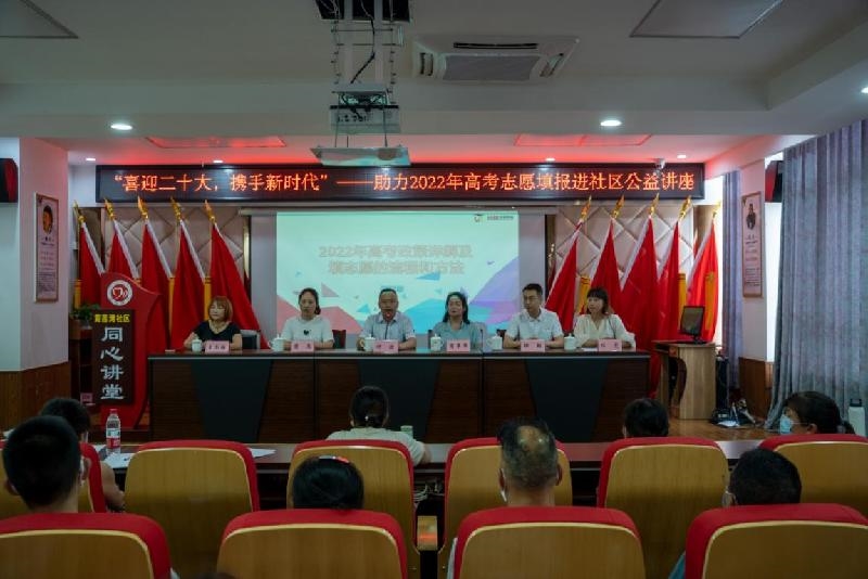 6月19日下午,民盟嘉陵总支在黄莲湾社区同心讲堂组织开展了“喜迎二十大,携手新时代——助力2022年高考志愿填报进社区”公益活动。区委统战部副部长、工商联党组书记何迎应邀现场指导并讲话,民盟嘉陵总支领导班子,社区相关领导参加活动。