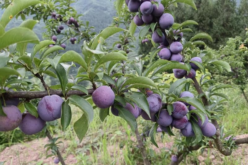 在文风村,放眼望去,漫山遍野的李子树上,一颗颗成熟的果实挂满枝头,许多树枝被果实压弯了腰。李子个头大肉汁多,香甜可口。穿行在果园,一串串青绿的、紫红的、大红的李子,让人垂涎欲滴,清风徐来,空气中弥漫着浓郁的果香。
