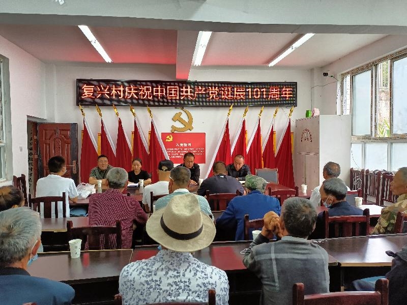 为庆祝中国共产党成立101周年,迎接党的二十大胜利召开,7月1日,天全县委统战部党支部赴联系帮扶村兴业乡复兴村开展庆“七一”支部联建活动。统战部党支部及复兴村党支部全体党员参加。