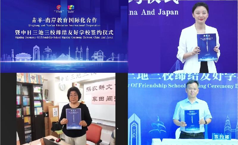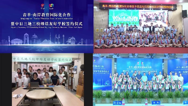 活动中,成都市青羊区教育局与重庆市南岸区教育委员会以线上形式签署教育国际化合作框架协议;成都市同辉(国际)学校、重庆市南岸区龙门浩隆平小学、日本睦新中文学校以线上形式签署友好学校合作协议。